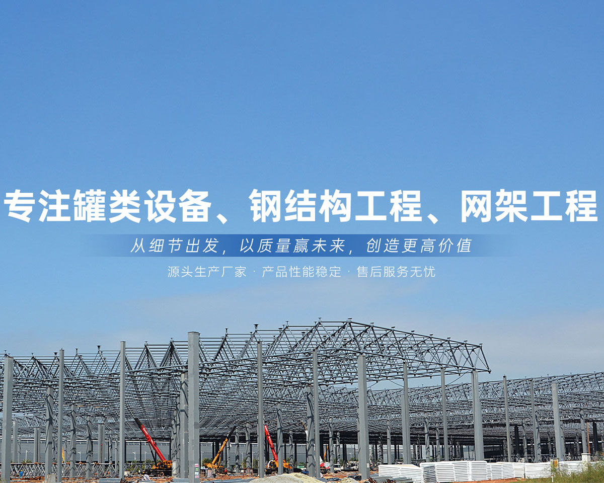 各式罐類設(shè)備、鋼結(jié)構(gòu)工程、網(wǎng)架工程的設(shè)計(jì)、制作、安裝為一體