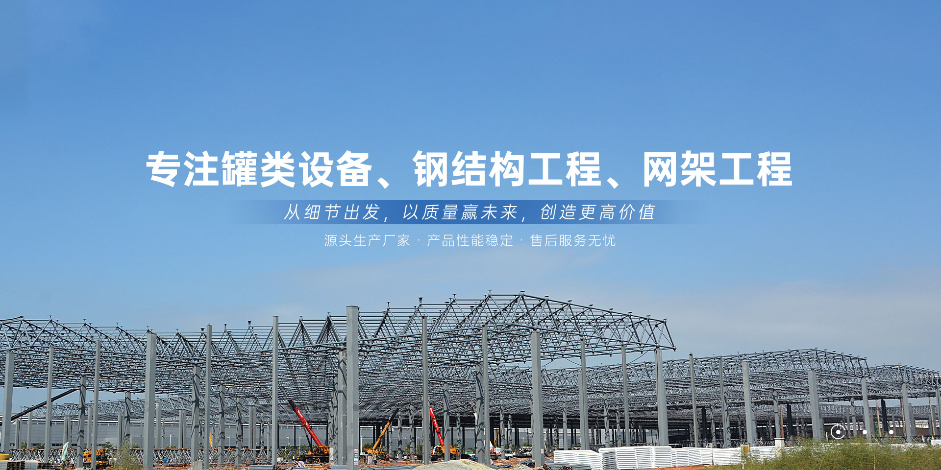 各式罐類設(shè)備、鋼結(jié)構(gòu)工程、網(wǎng)架工程的設(shè)計(jì)、制作、安裝為一體